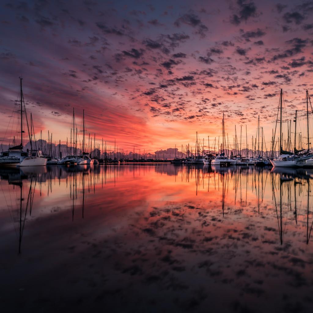 Wallpaper Boats at the pier in the water at sunset