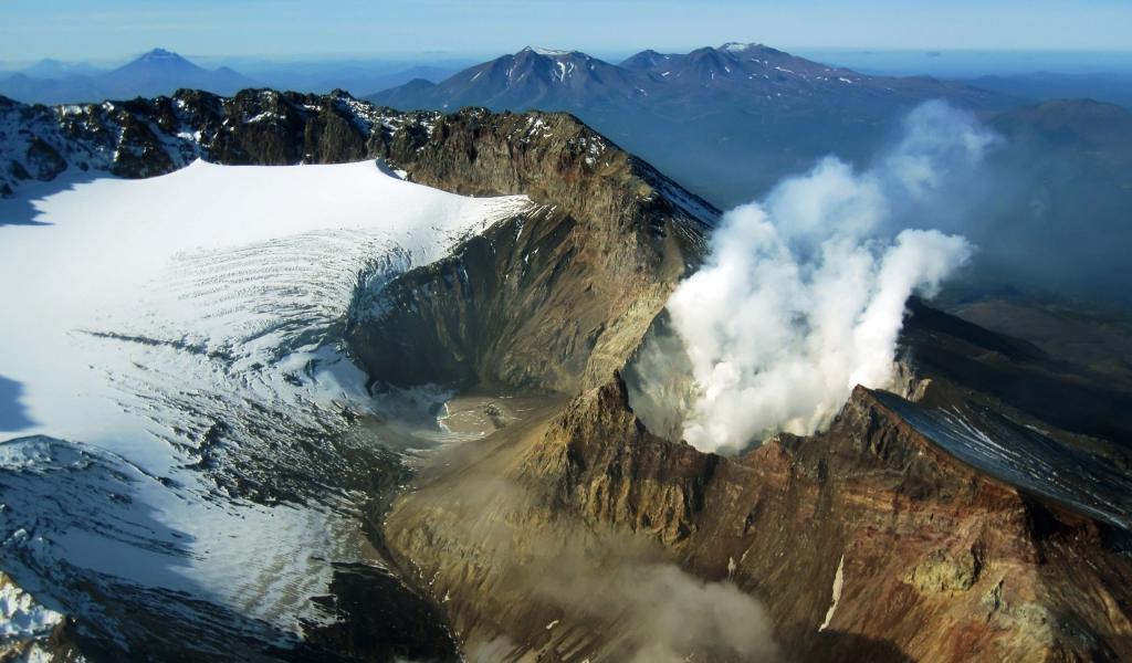 Wallpaper The smoking volcano, Kamchatka, Russia