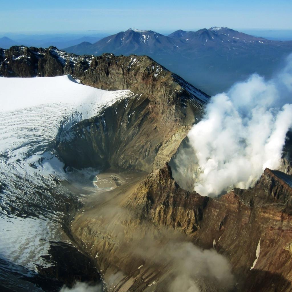 Wallpaper The smoking volcano, Kamchatka, Russia
