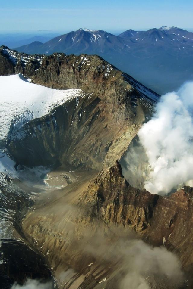 Wallpaper The smoking volcano, Kamchatka, Russia