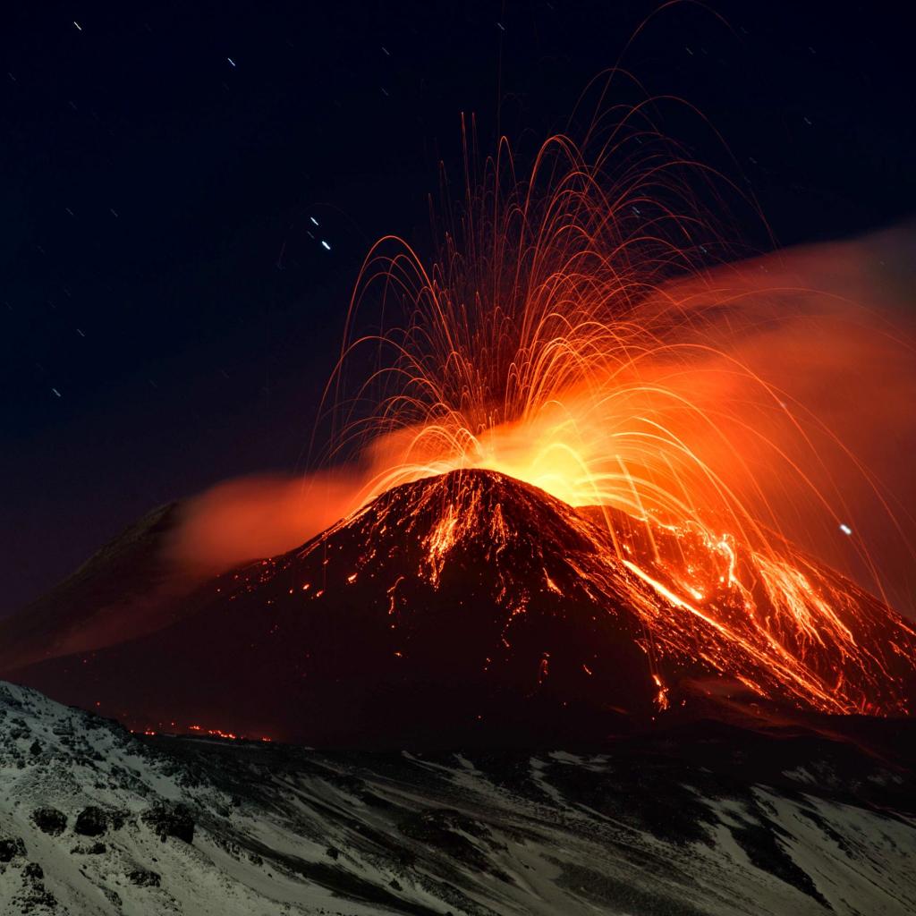 Wallpaper The active volcano Etna at night