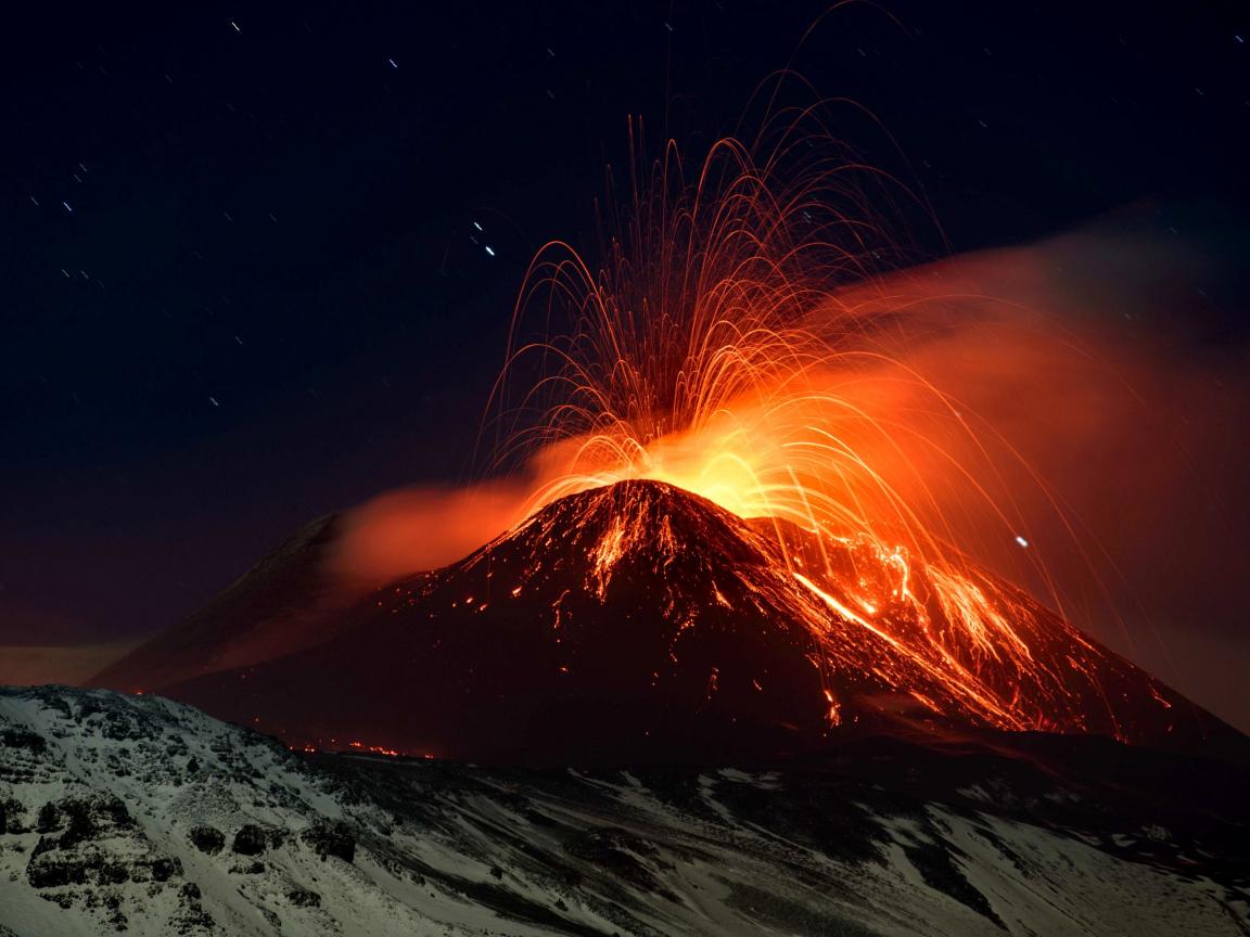 Wallpaper The active volcano Etna at night