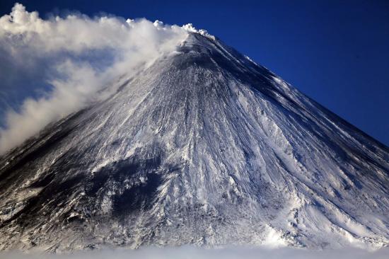 Wallpaper White smoke emerges from Klyuchevskaya volcano volcano