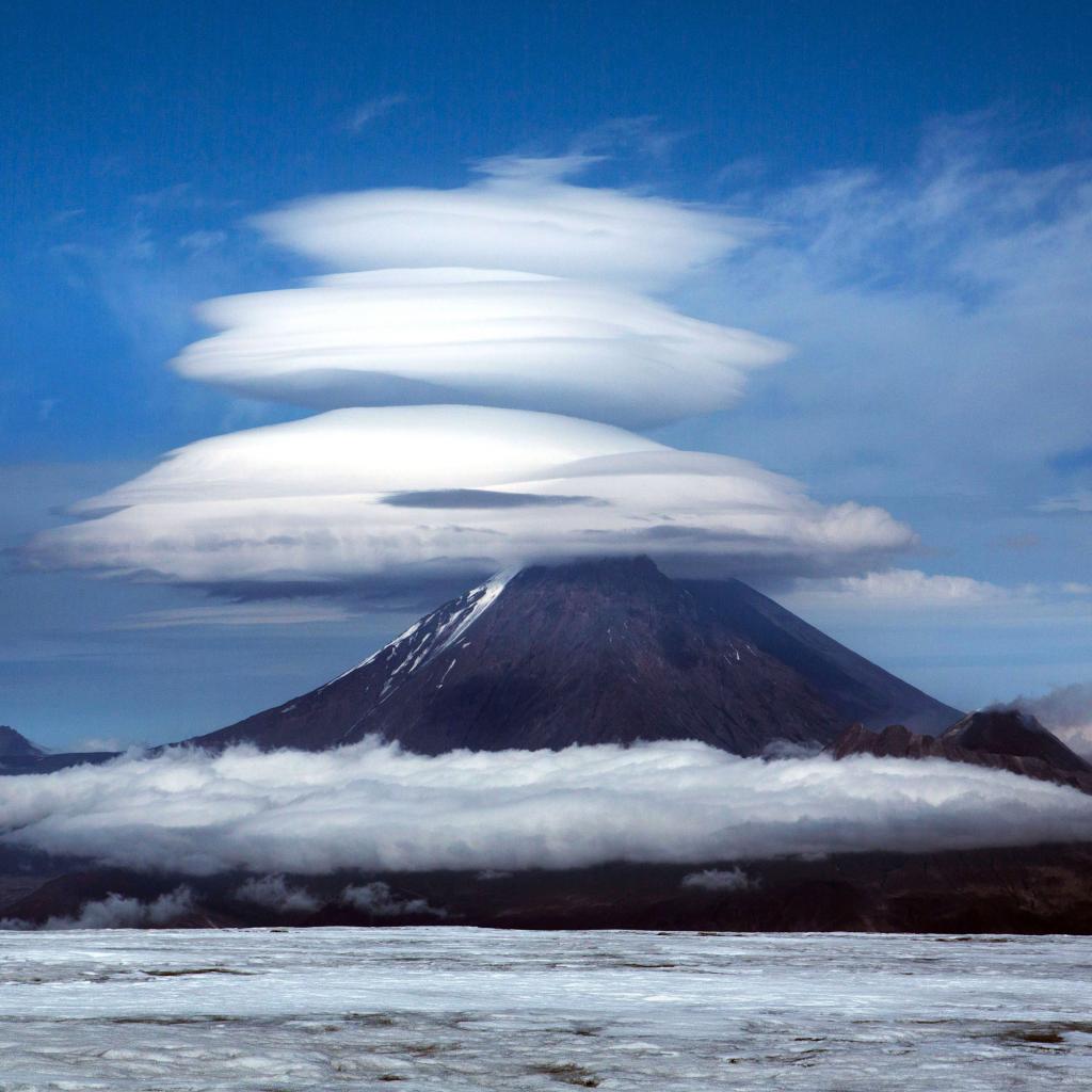 Wallpaper Clouds over Klyuchevskaya Sopka, Kamchatka