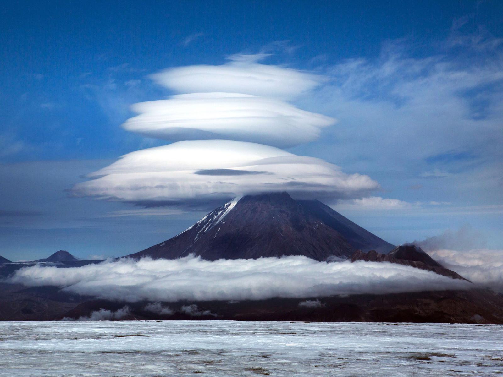 Wallpaper Clouds over Klyuchevskaya Sopka, Kamchatka