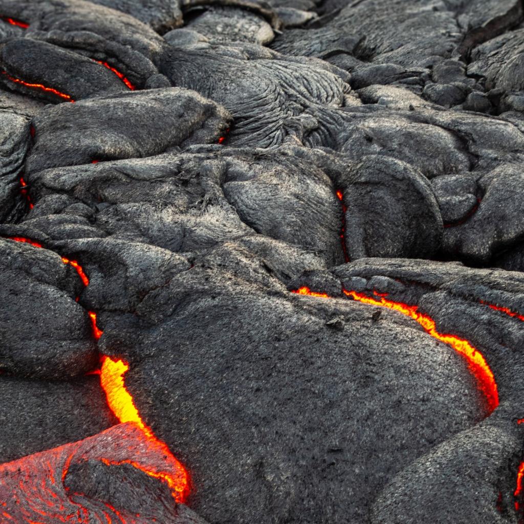 Wallpaper Lava makes its way through the cracks in the volcano
