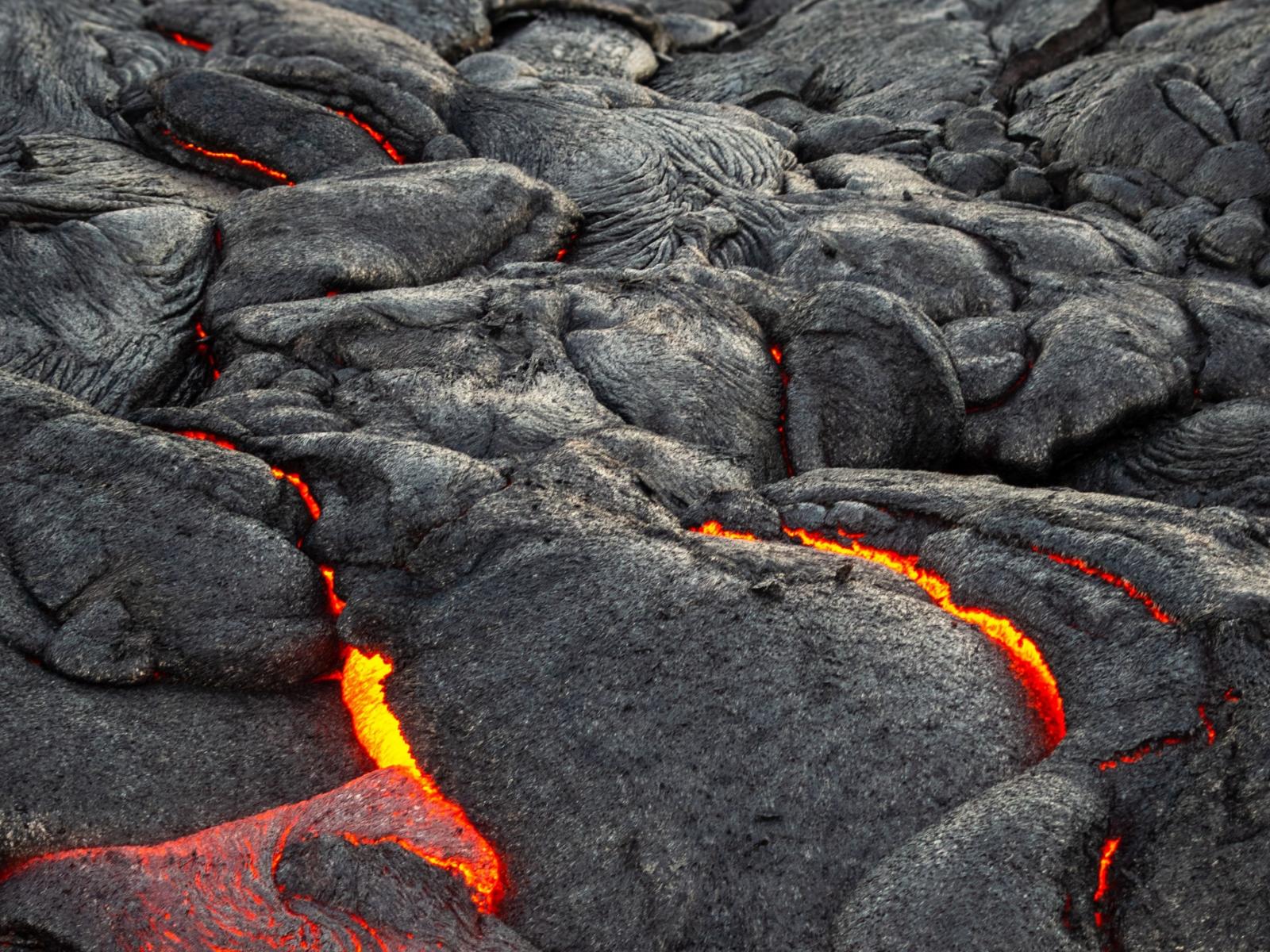 Wallpaper Lava makes its way through the cracks in the volcano