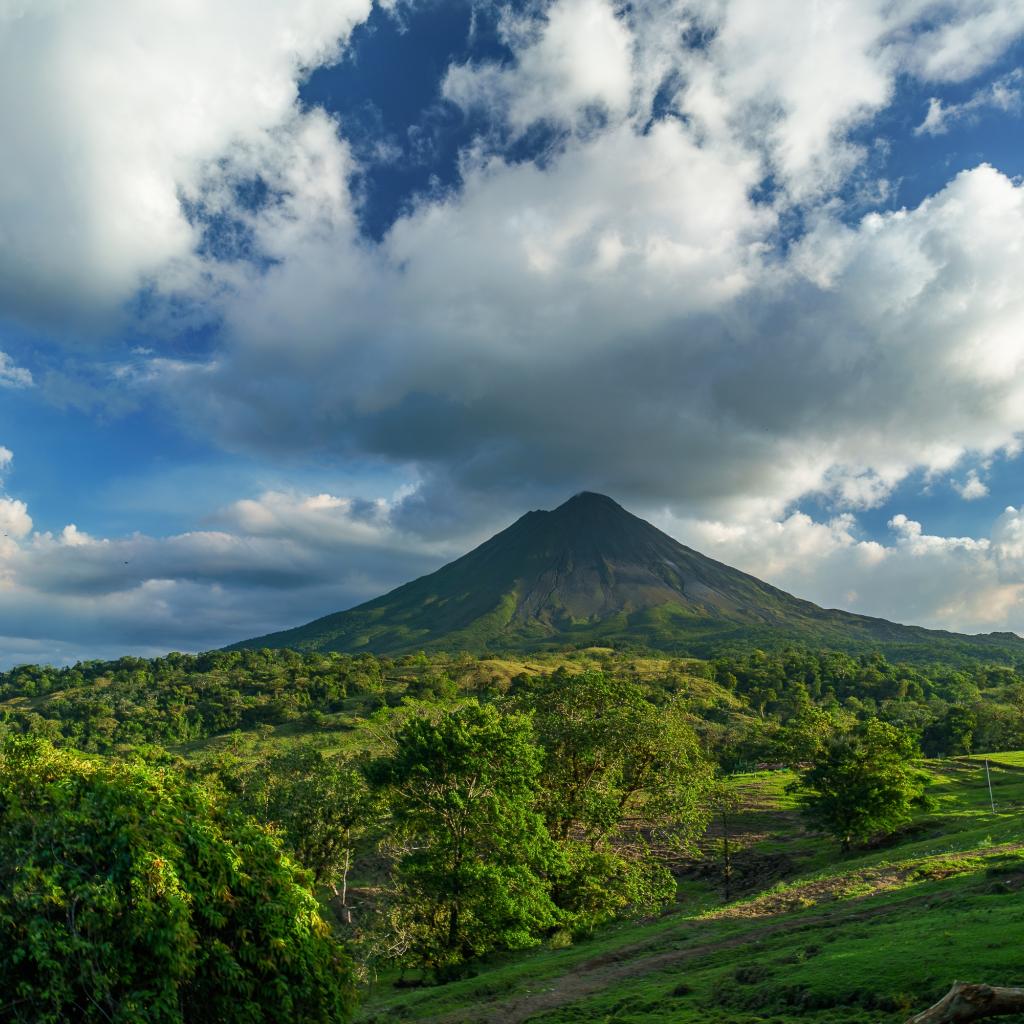 Wallpaper Green volcano Arenal under white clouds, Costa Rica