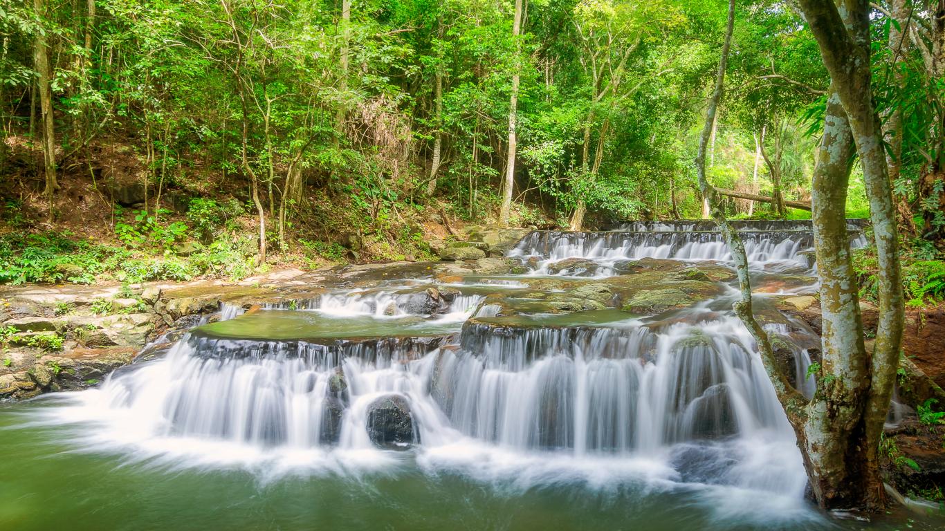 Wallpaper Quick forest small waterfall