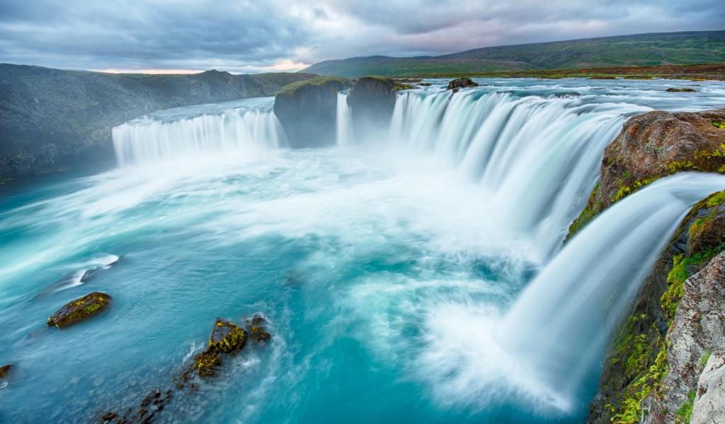 Wallpaper The rapid waterfall flows down from the cliff.