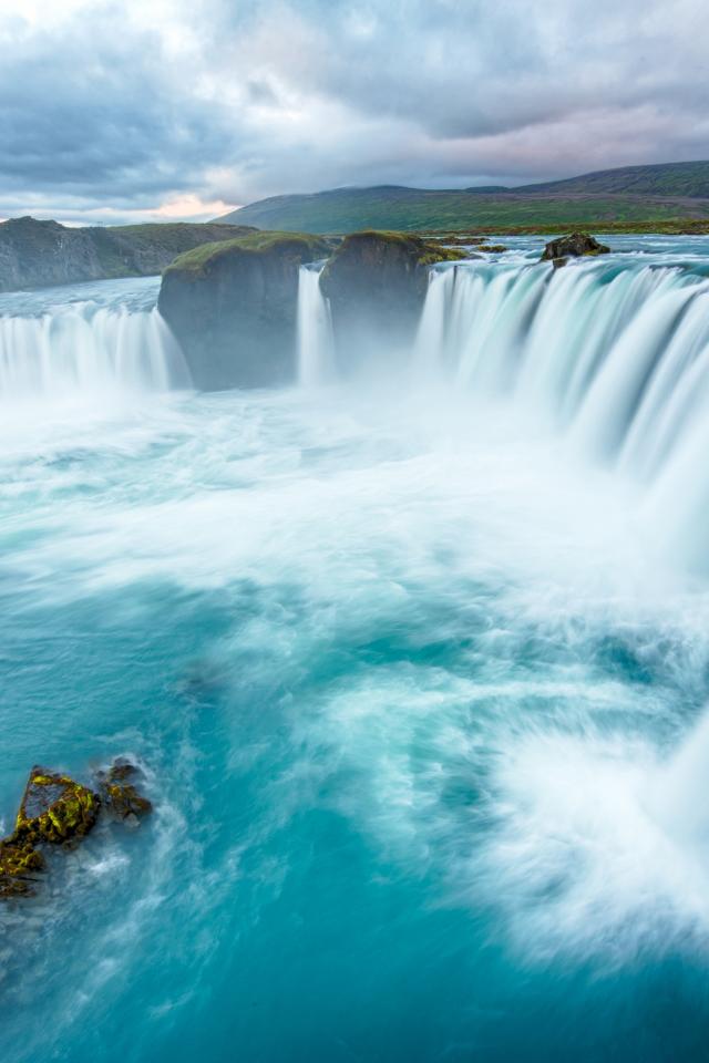 Wallpaper The rapid waterfall flows down from the cliff.