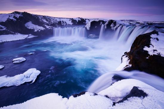 Wallpaper Godafoss waterfall in winter, Iceland