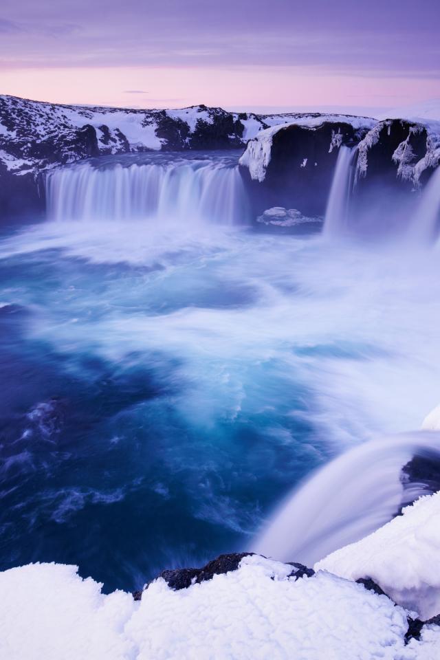Wallpaper Godafoss waterfall in winter, Iceland
