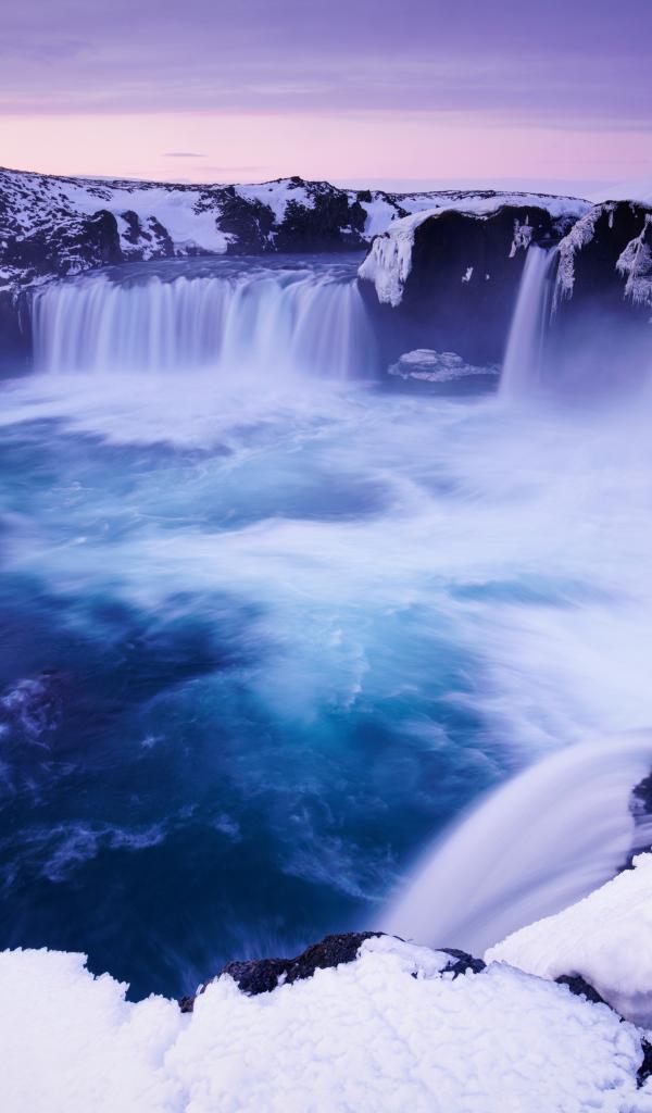 Wallpaper Godafoss waterfall in winter, Iceland