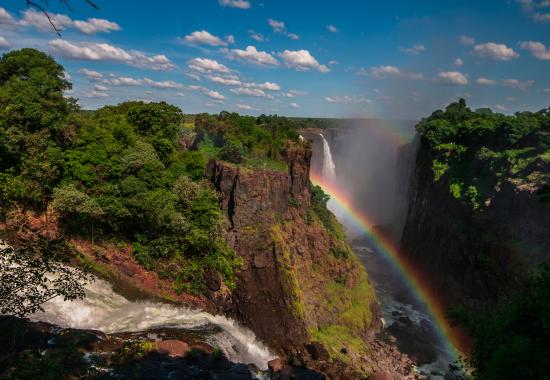 Wallpaper Beautiful waterfall drains from a cliff under a blue sky