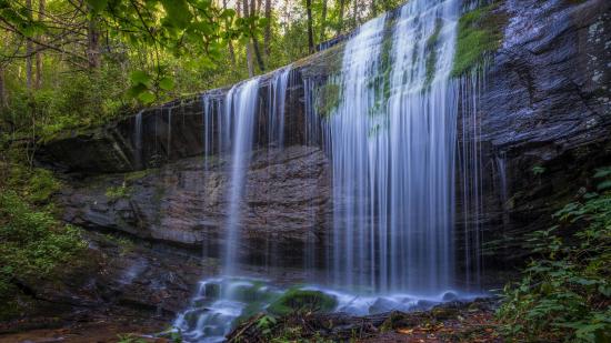 Wallpaper Cold water of a waterfall flows down a wet rock