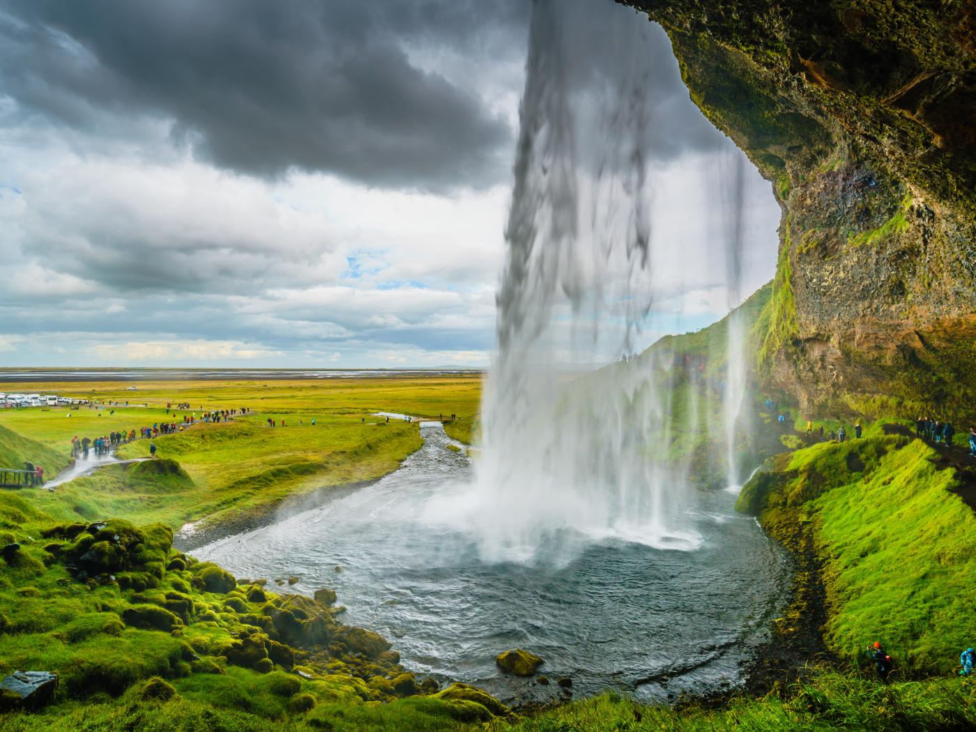 Wallpaper Iceland waterfall flows down from a cliff