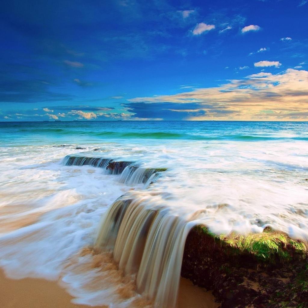 Wallpaper White waves of raging ocean on the sand under the blue sky