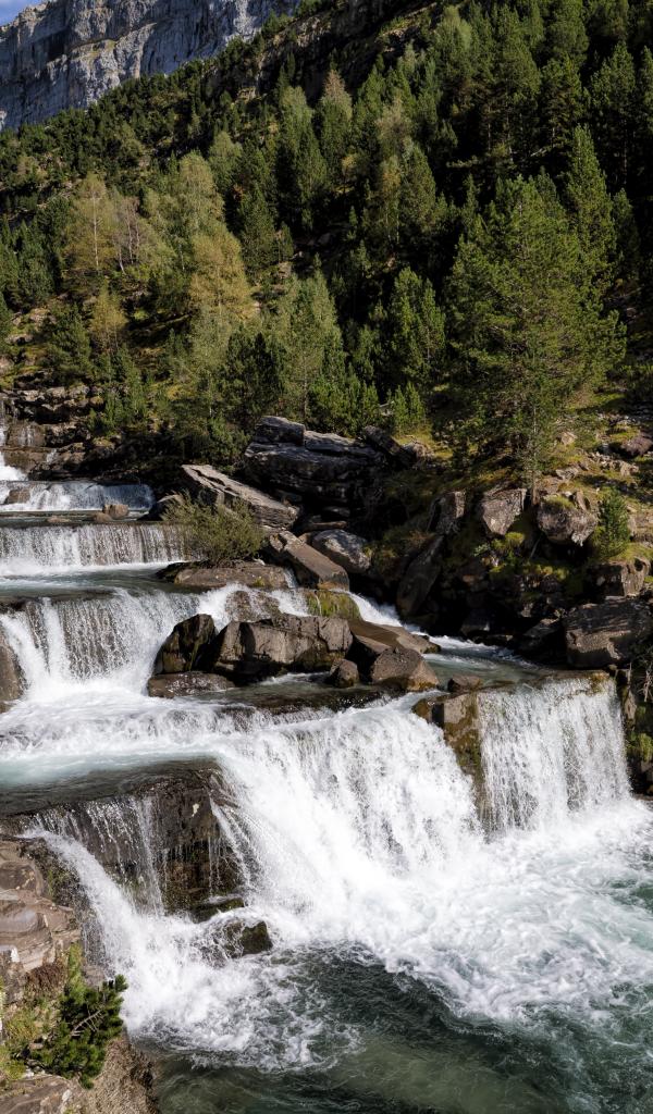 Wallpaper Beautiful cascades of waterfall by the cliff
