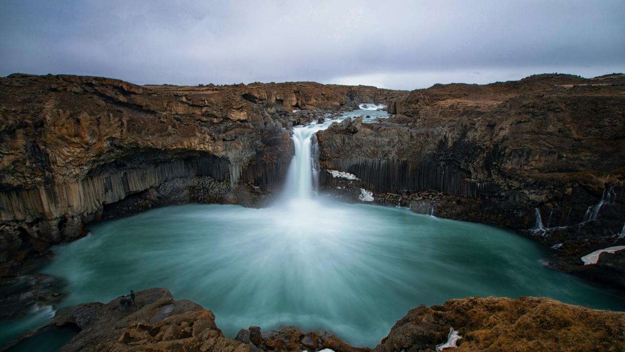 Wallpaper A beautiful waterfall flows from a stone cliff into a lake