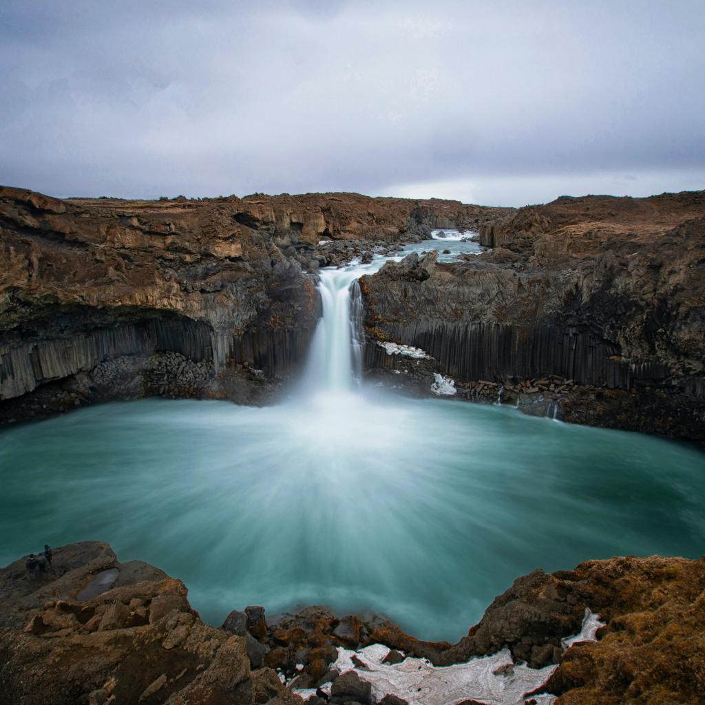Wallpaper A beautiful waterfall flows from a stone cliff into a lake