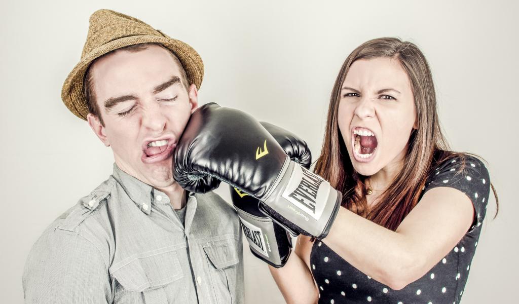Wallpaper A terrible girl in boxing gloves beats a guy