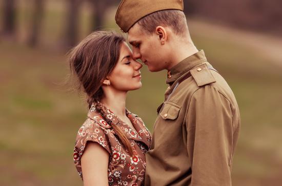 Wallpaper Girl meets soldier with war, retro photo