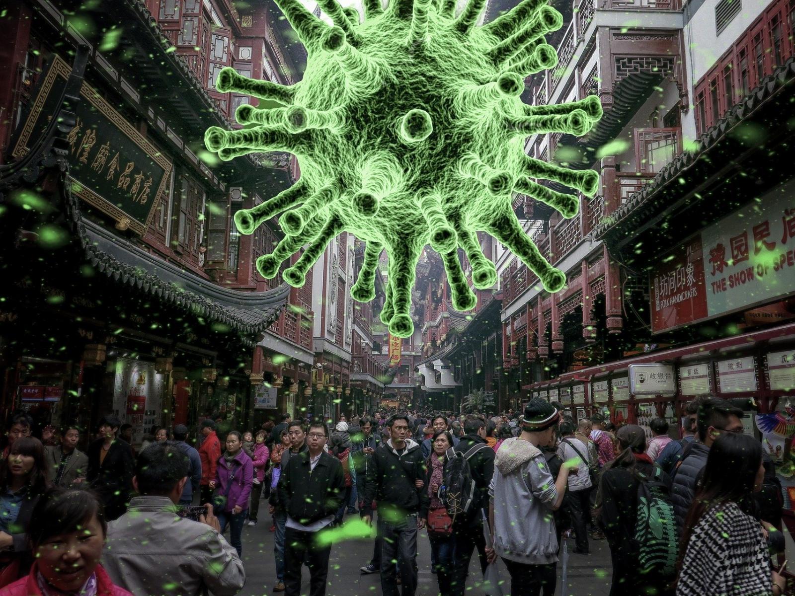 Wallpaper Coronavirus virus hanging over the city, China