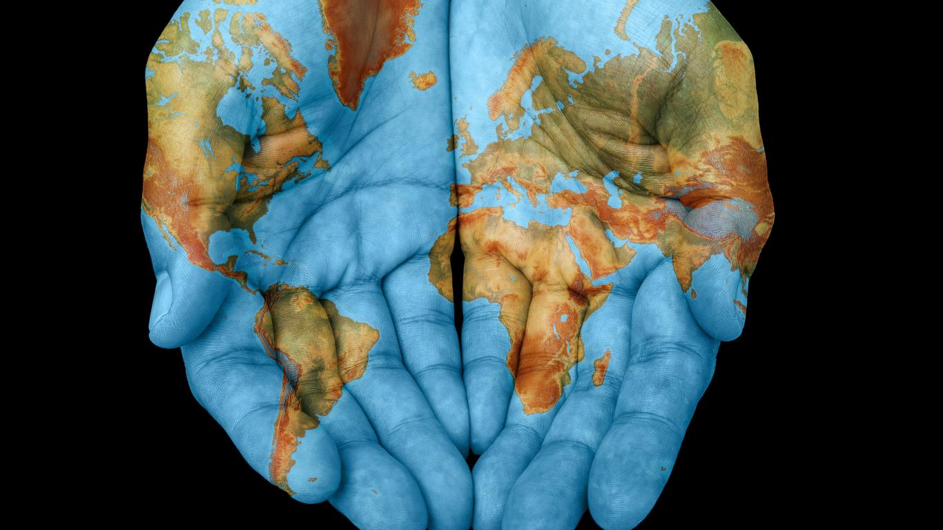Wallpaper Hands with world map on black background