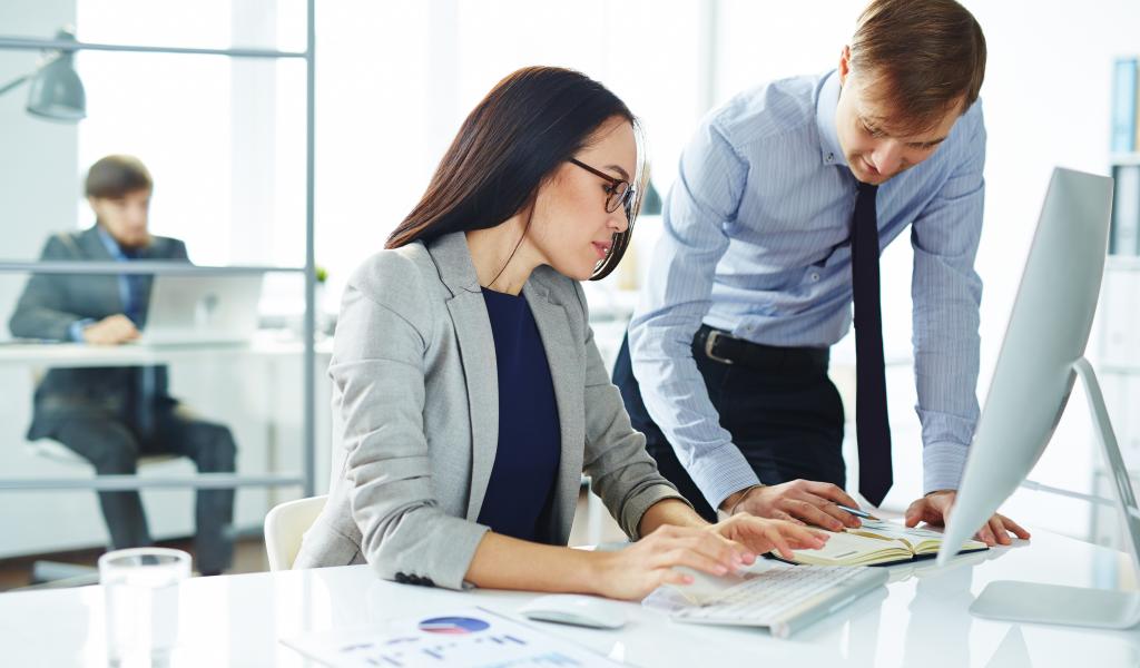 Wallpaper Business girl and guy in the office
