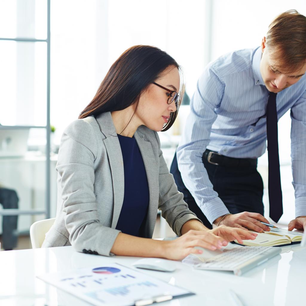 Wallpaper Business girl in glasses with a laptop and a cup of coffee
