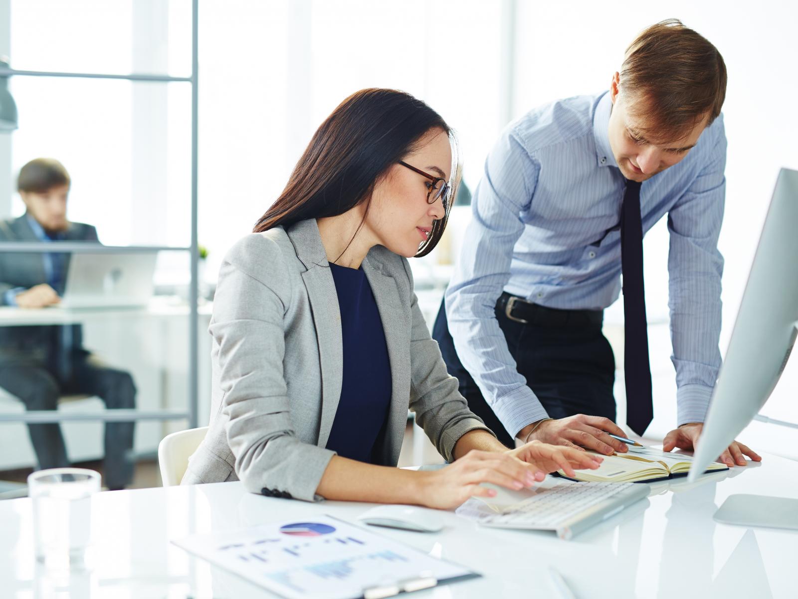 Wallpaper Business girl in glasses with a laptop and a cup of coffee