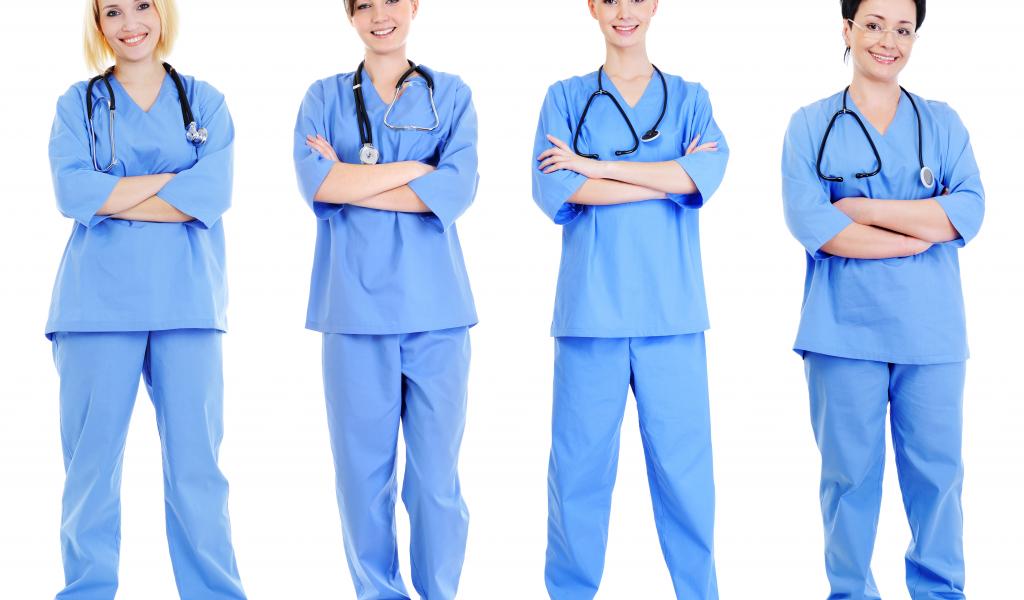 » Wallpaper Team of doctors in uniform on white background