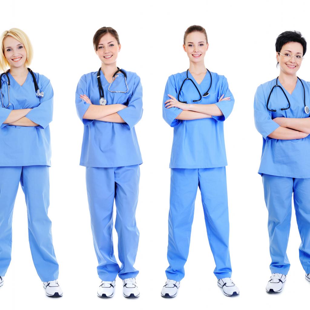 Wallpaper Team of doctors in uniform on white background