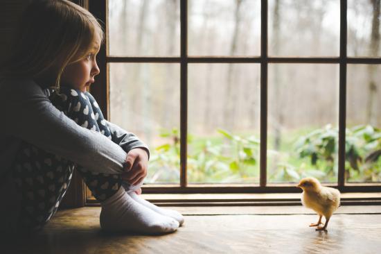 Wallpaper Little girl and chicken at the window