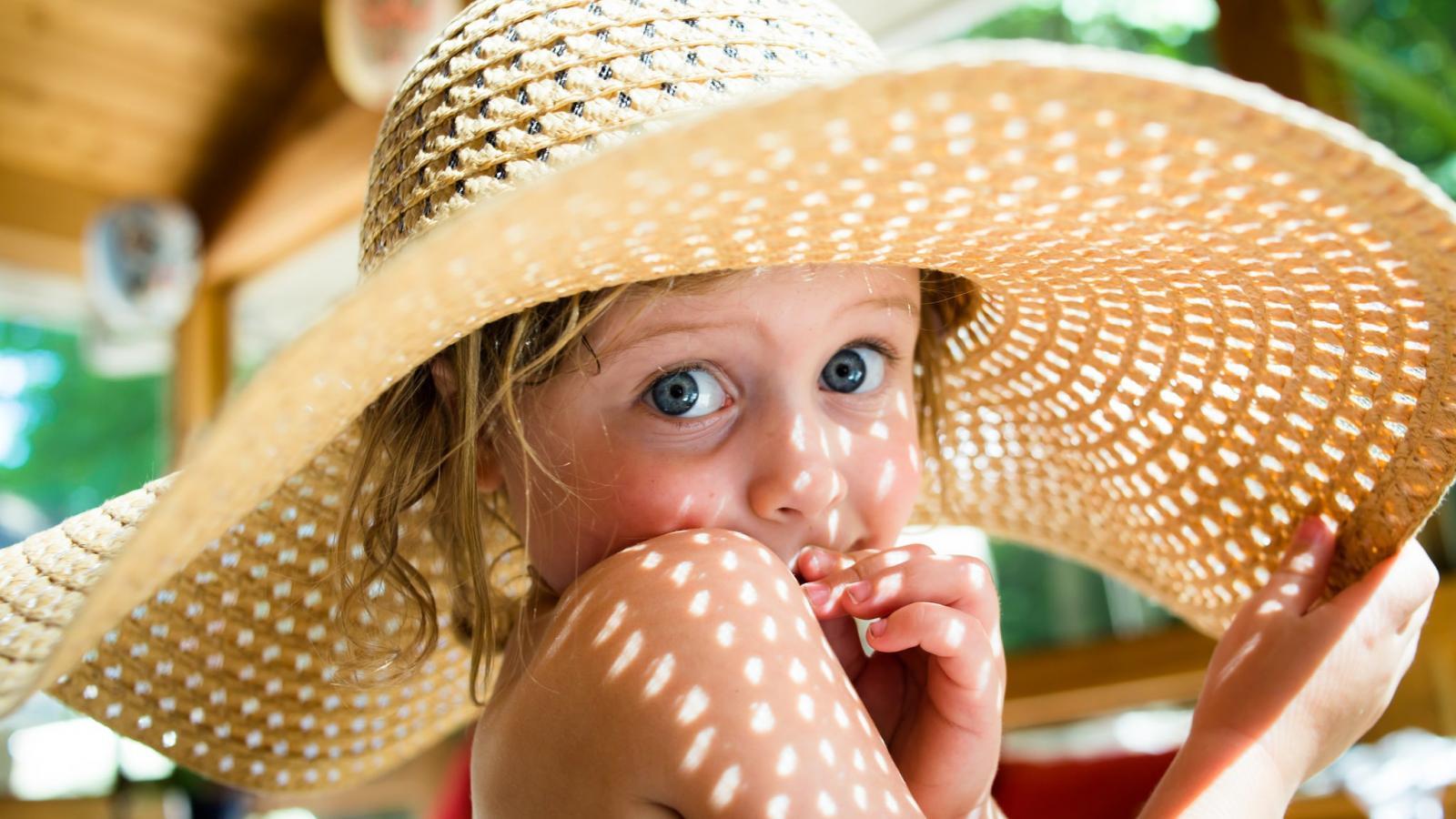 Wallpaper Beautiful girl in a straw hat on a gray background