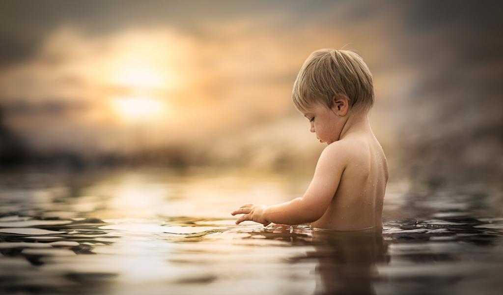 » Wallpaper The little boy bathes in water