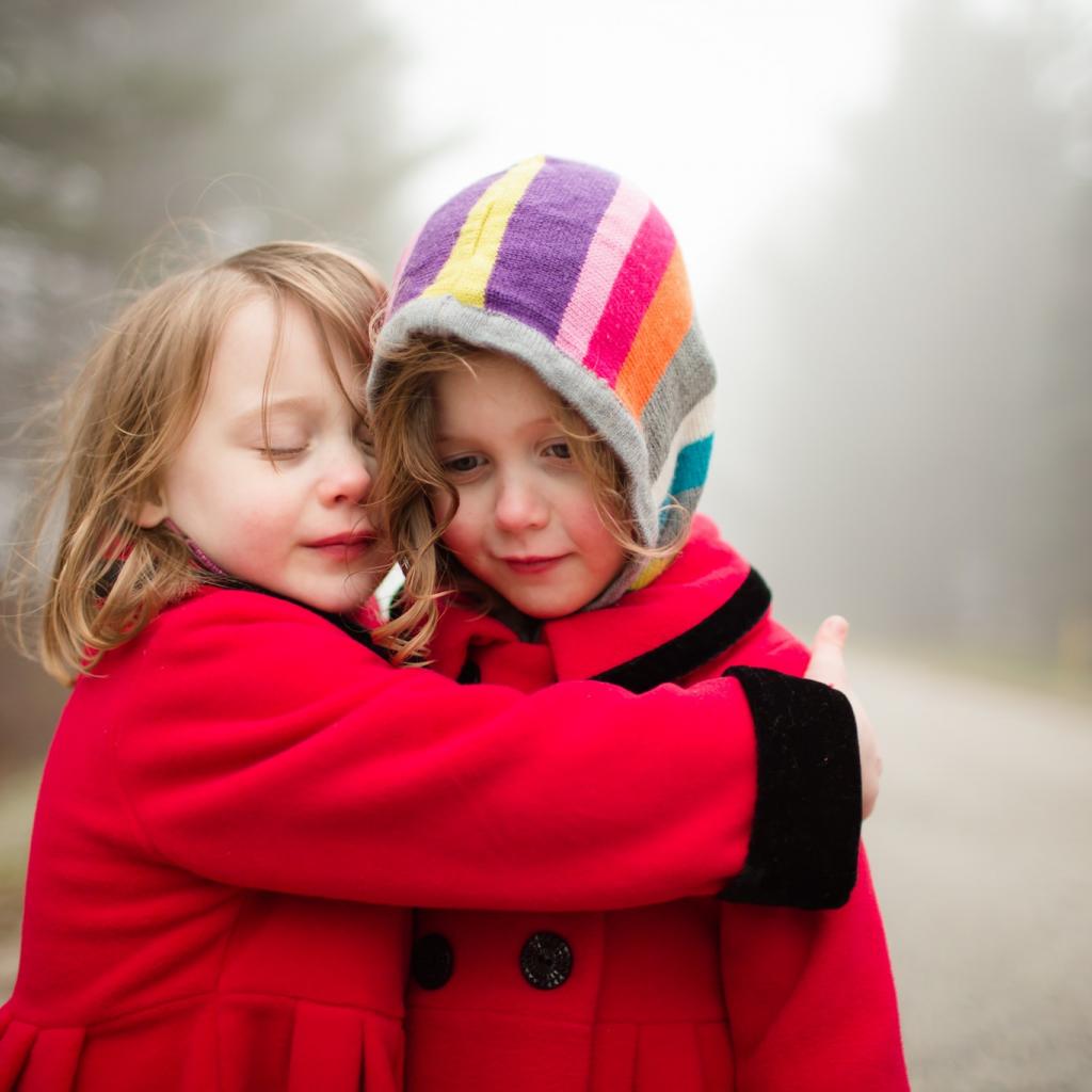» Wallpaper Two little girls hugging each other