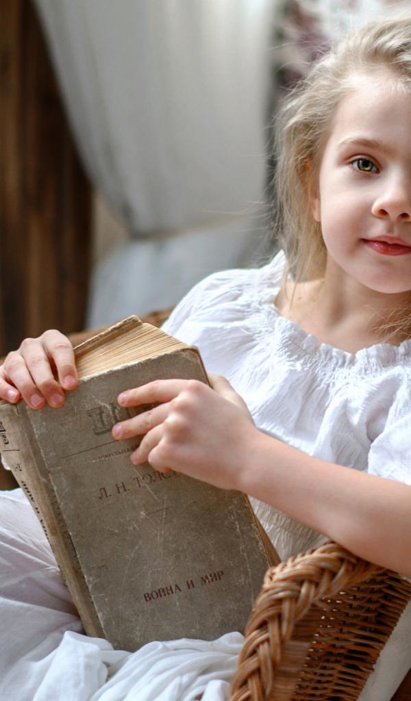 Wallpaper Beautiful little girl in white dress with book