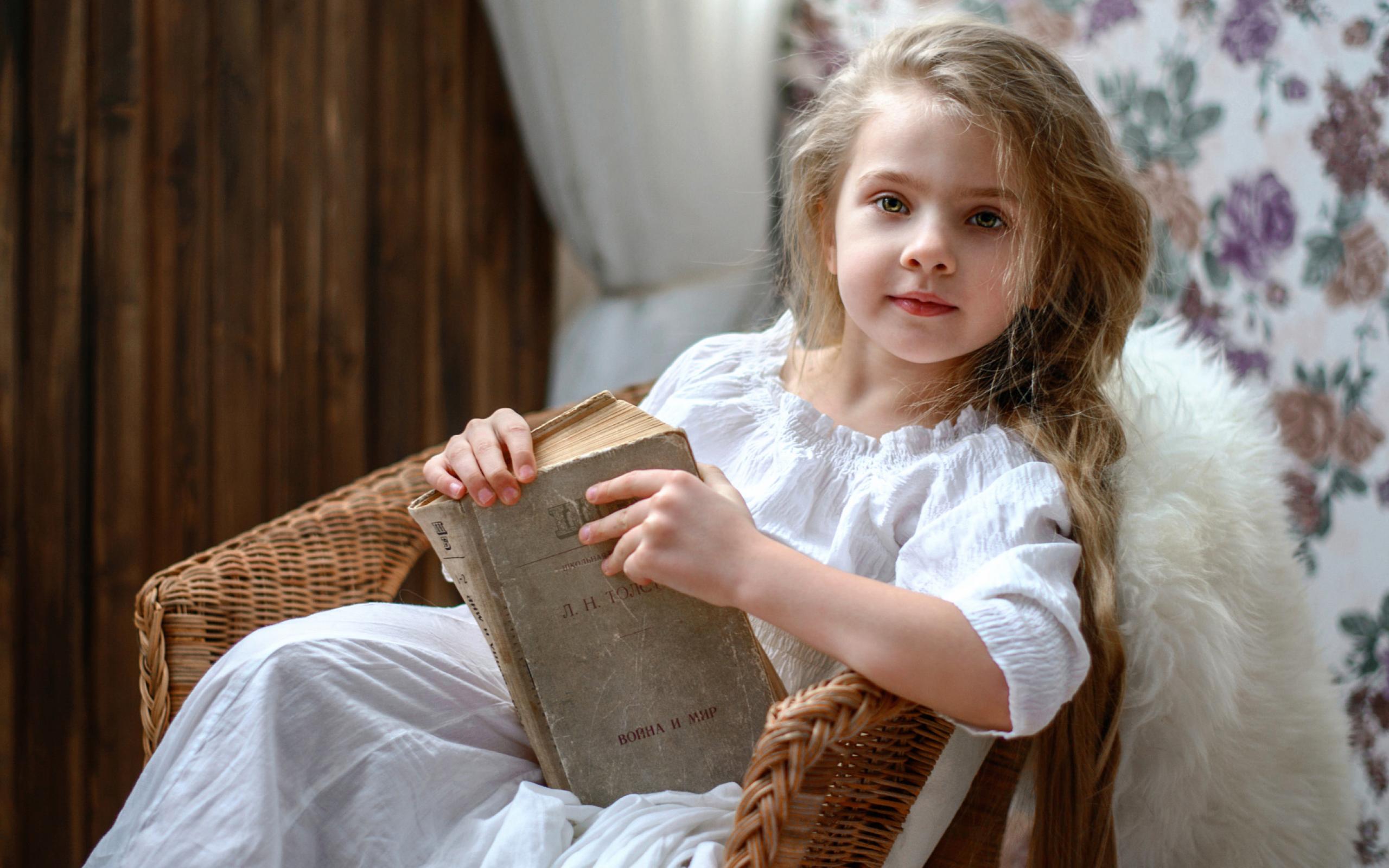 Wallpaper Beautiful little girl in white dress with book