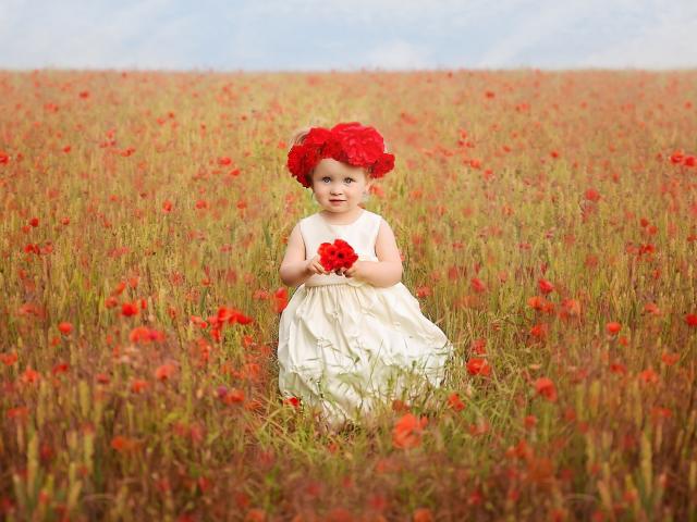 Wallpaper Little girl in a field of red poppies