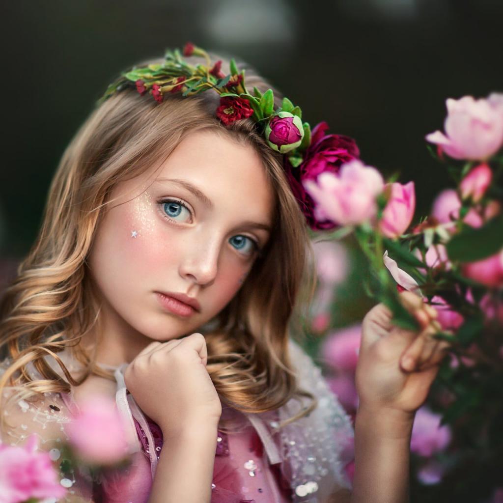 Wallpaper Tender blue-eyed girl with flowers in her hair