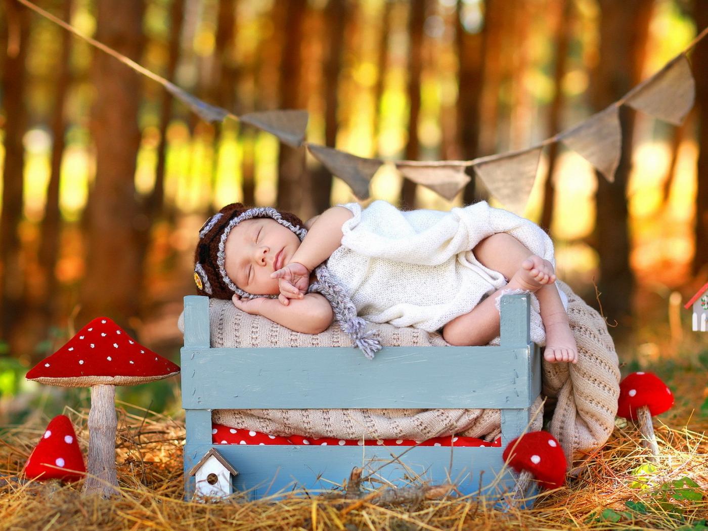 Wallpaper A small child is sleeping on the nature