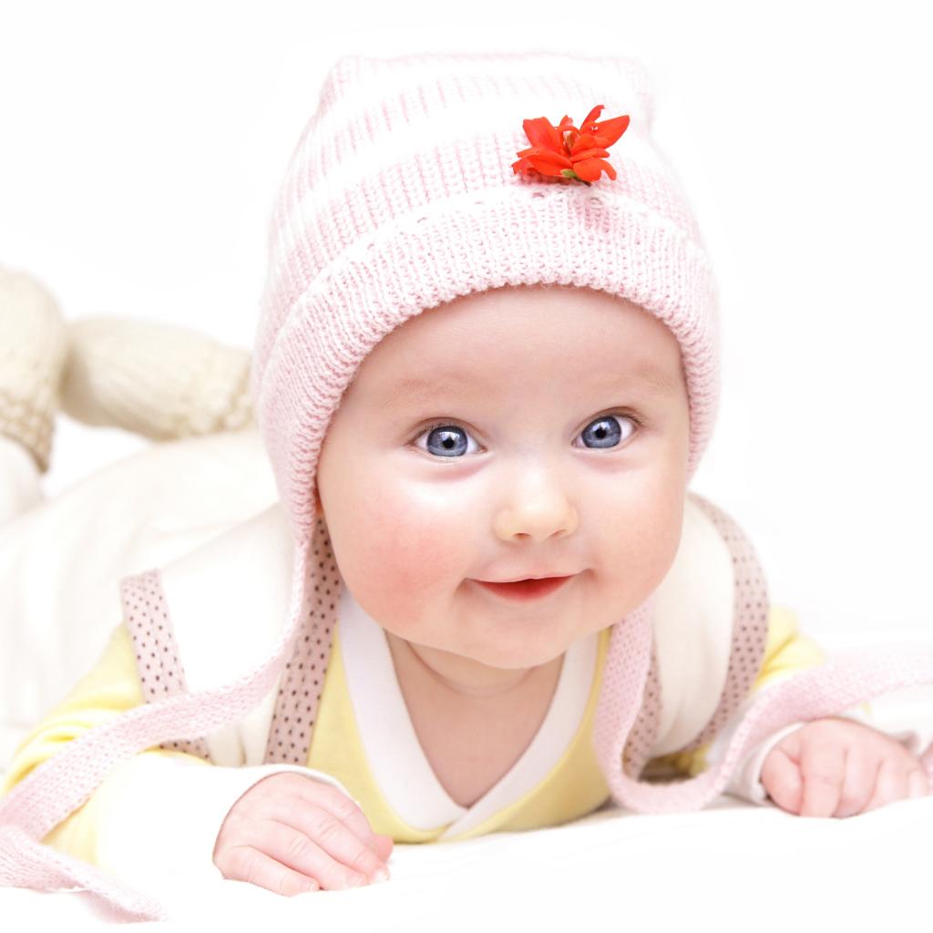 » Wallpaper Smiling blue-eyed kid in a pink hat