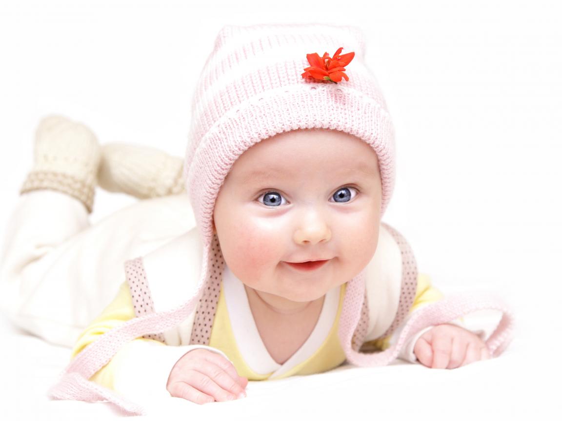 » Wallpaper Smiling blue-eyed kid in a pink hat