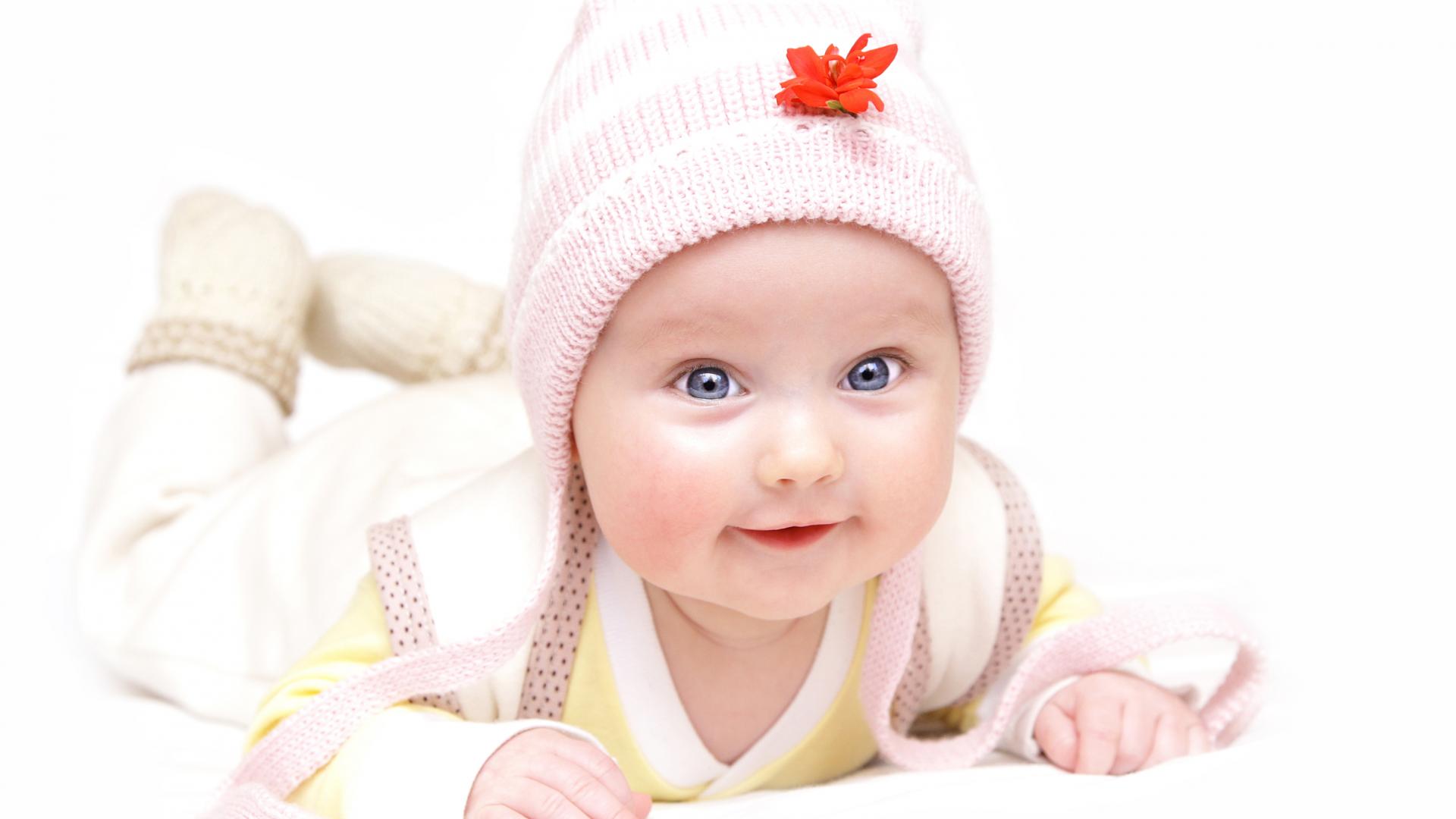» Wallpaper Smiling blue-eyed kid in a pink hat