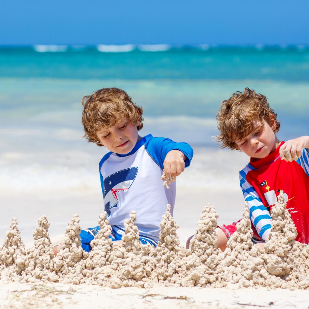 Wallpaper Two little boys playing with sand on the beach