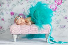 Wallpaper A little girl in a beautiful fluffy skirt is sleeping on a white blanket
