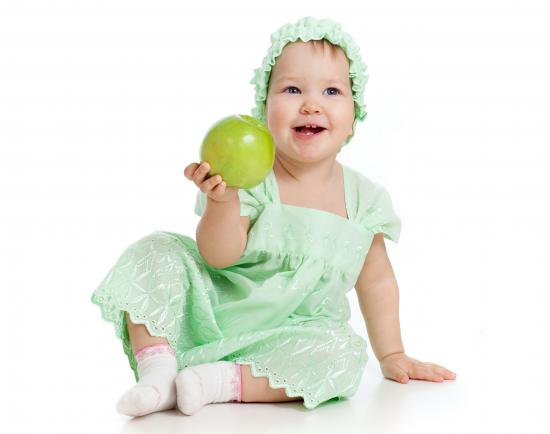Wallpaper Little blue-eyed girl with a green apple in her hands