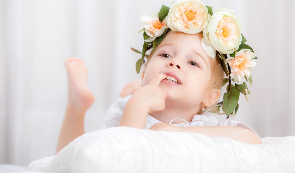 Wallpaper Little girl with a beautiful wreath of flowers on her head